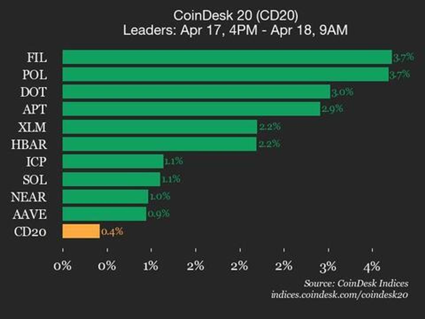 CoinDesk 20 teljesítményfrissítés: Filecoin (FIL) 3,7%-ot nyer, mivel az index magasabb szinten kereskedik